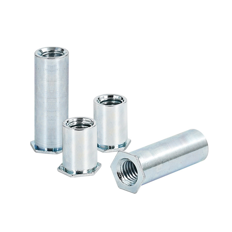 Чтобы установить колонку для заклепка углеродистой стали, вы используете инструмент заклепки. Гексагональное тело останавливает его от вращения, когда вы кладете в предварительно просверленное отверстие. Инструмент тянет на головку оправки, делая изгиб колонны рукава на заднюю часть заготовки. Это создает твердую постоянную точку привязки. Сопоставление размера отверстия с диаметра колонны заклеповой гайки здесь очень важно, ошибаться, и это не сработает правильно.
