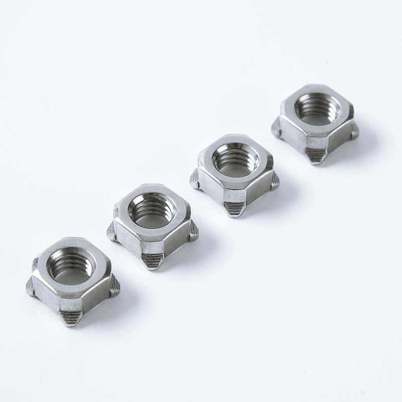 Квадратные гайки класса 5 и типа 1D свариваются легко и быстро. Совместите оборудование с небольшими выступами на гайке и слегка нагрейте. Затем гайку можно быстро приварить к железной пластине или другим металлическим заготовкам. По сравнению с обычными гайками, которые для установки требуют завинчивания, этот метод существенно экономит время. Гайка вряд ли будет вращаться легко, и ее устойчивость намного лучше, чем у круглой гайки.