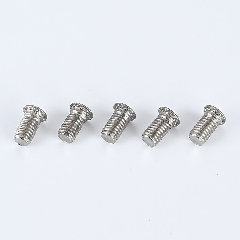 Скрытые шпильки с резьбой головы требуют конкретного процесса захвата. Винт вставлен в предварительно просверленные отверстия в соединенных материалах. Используя подходящий для заклепового инструмента (например, орбитальный или радиальный заклепки), выступающий резьбовой конец механически деформируется («прикован») против матрицы, образуя вторичную головку, которая навсегда зажимает материалы, создавая сильный, промывочный соединение.