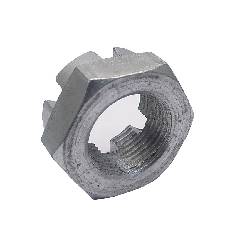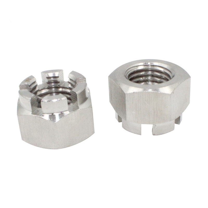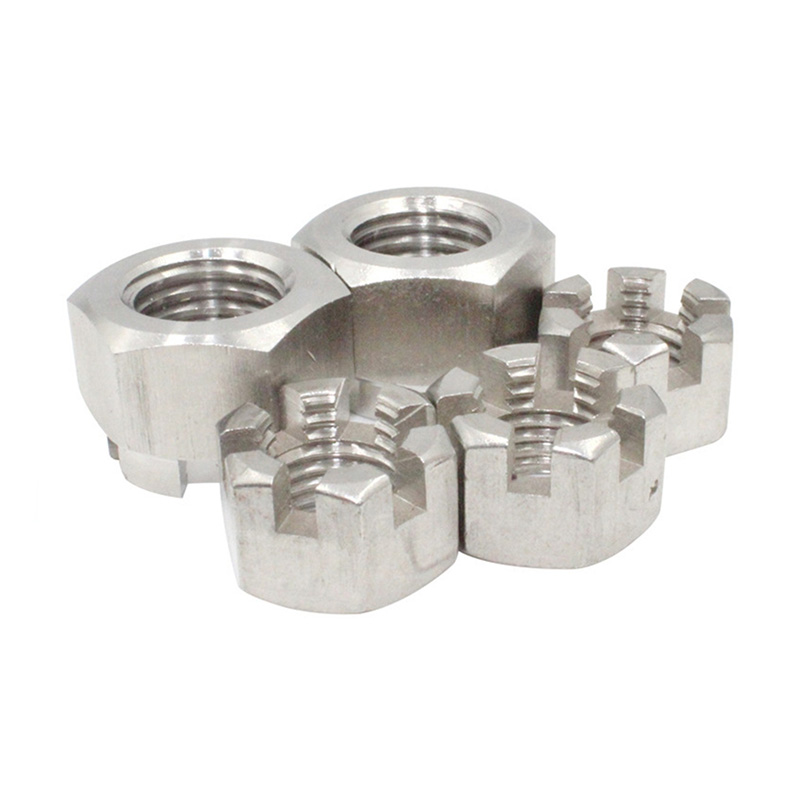 Часть купола имеет несколько слотов (обычно шесть), которые равномерно распределены и простираются прямо вдоль оси гайки. Эти слоты точно обработаны и могут идеально соответствовать стандартным открытым булавкам. Дизайн этого щелевого ореха головки является как практичной, так и ориентированной на безопасность: как только вы затягиваете гайку, ее можно зафиксировать на месте, предотвращая его упасть из болта из-за вибрации или других сил.