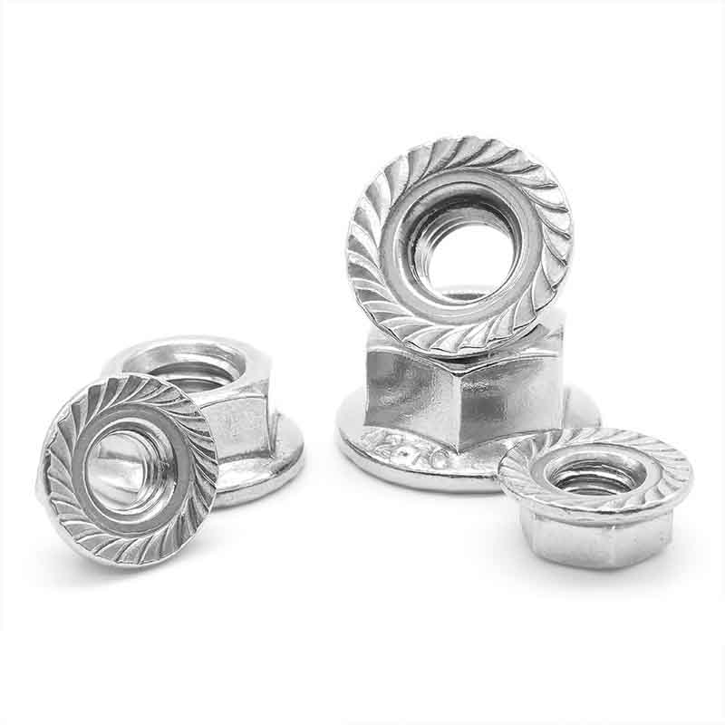 У нас есть версии наших шестигранных фланцевых гаек с контргайками для промышленных зданий, которые сами по себе остаются затянутыми. У них есть неметаллическая деталь, обычно нейлоновая, втыкаемая в верхнюю часть резьбы гайки. Когда вы затягиваете гайку, эта деталь трется о резьбу болта. Это создает своего рода «удерживающий крутящий момент», который не дает ему ослабнуть даже при вибрации, ударах или изменениях температуры. И они по-прежнему сохраняют преимущества высокой прочности и распределения нагрузки конструкции фланца.