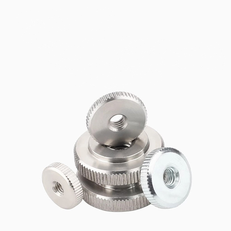 В этой новой оригинальной гайке с накаткой используются обычные металлы, которые подходят для большинства обычных применений. Самый популярный вариант – углеродистая сталь. Он доступен по цене и подходит для работ внутри помещений, например, для сборки небольших инструментов или деталей электронных устройств. Обычно он имеет базовую обработку поверхности для предотвращения легкой ржавчины, ничего лишнего.