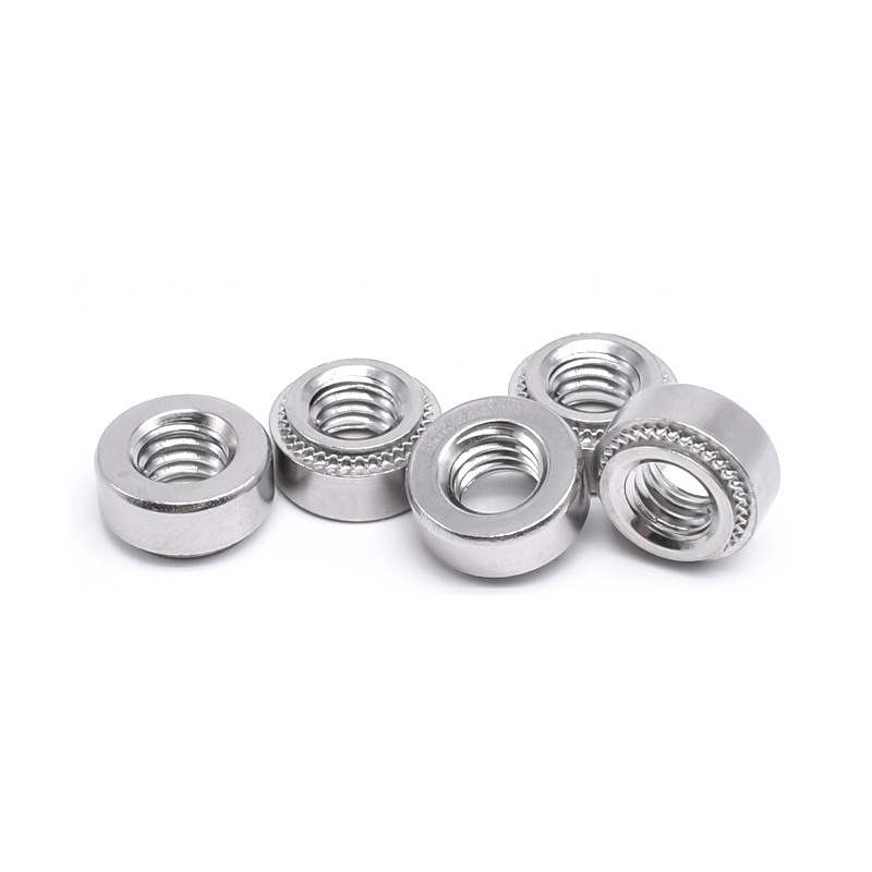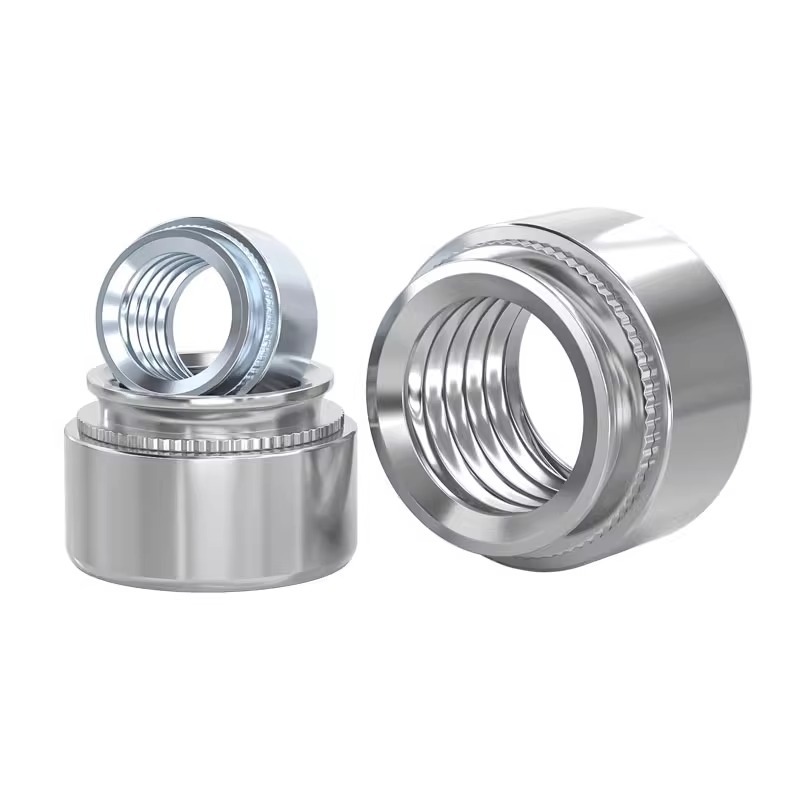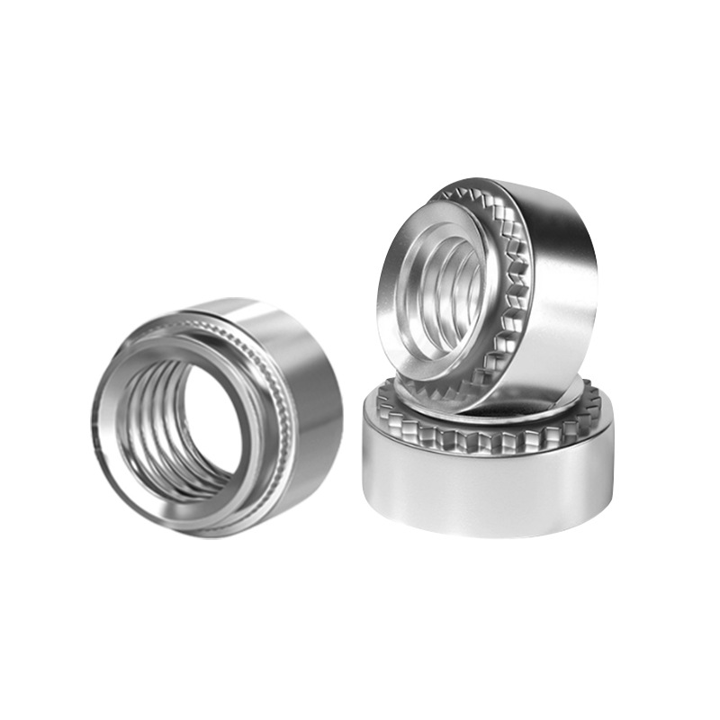 Главное в постоянном заглувающем гайке заключается в том, что она может сформировать постоянное, сильное соединение непосредственно в пластичном листовом металле или нерушимых пластинах без необходимости предварительно просверленных резьбов. Когда вы устанавливаете его, пресс толкает постоянную заклинательную гайку в материал. Его специфическая форма заставляет металл вокруг него перемещаться и течь в кольцо в форме кольца (например, кнурл или канавку) под головой и/или вокруг хвостовика.
