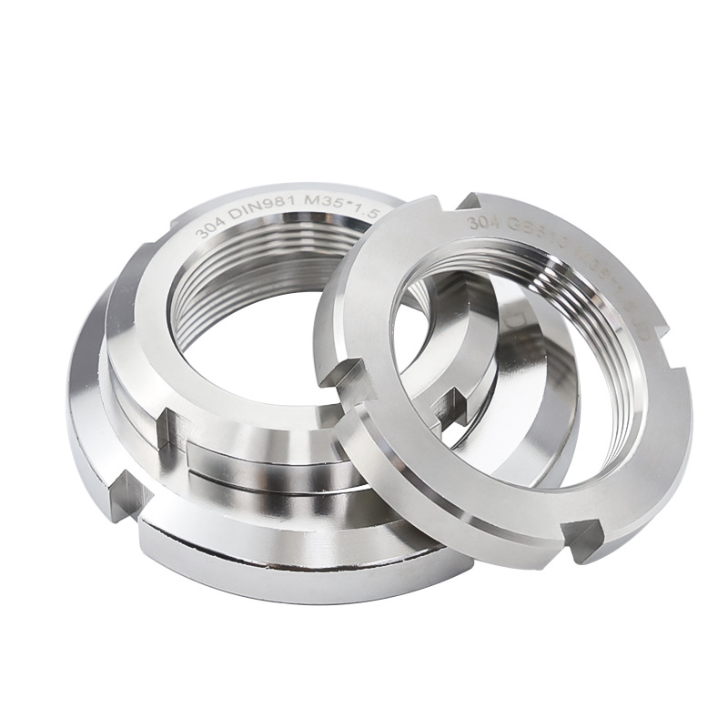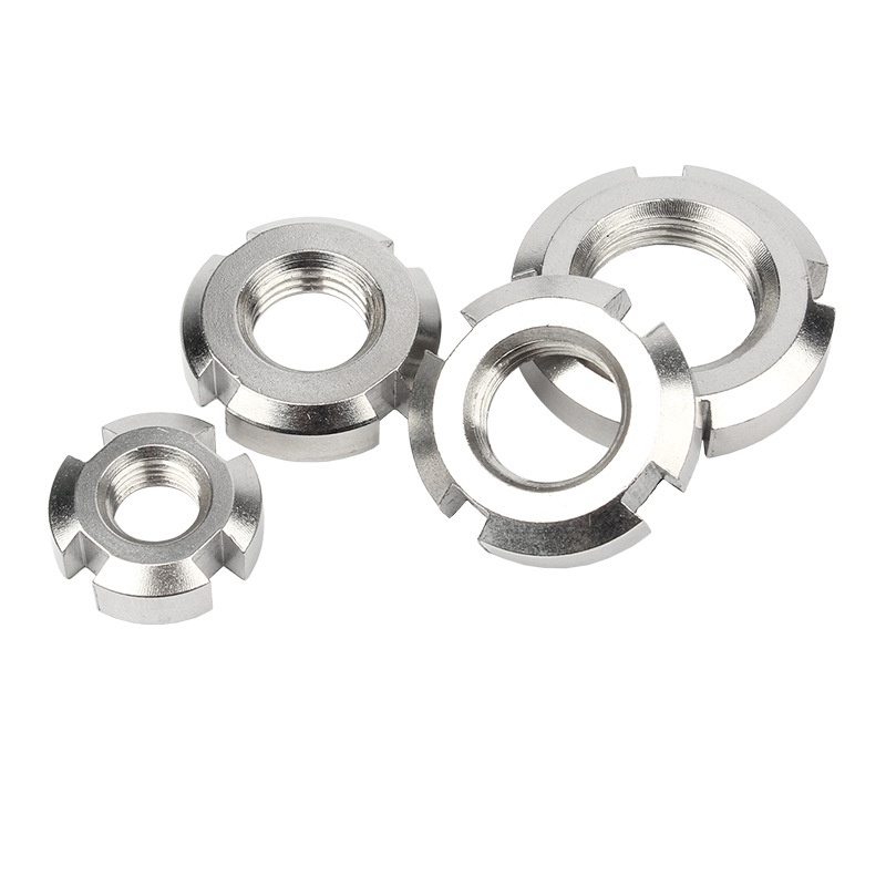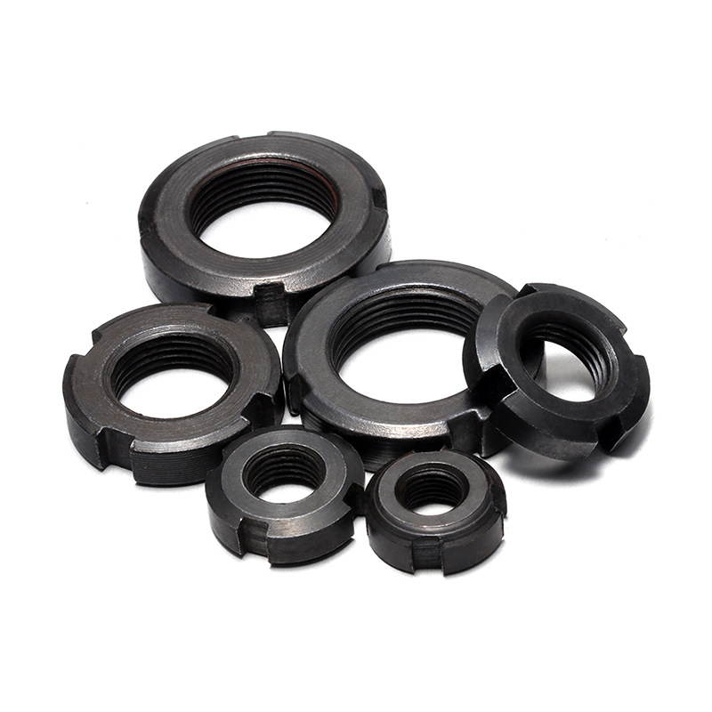 В промышленном оборудовании широко используются эти стопорные круглые гайки с прорезями и принудительной блокировкой, особенно в средах с высокой вибрацией, таких как коробки передач, прессы и конвейерные системы. Круглая форма этих гаек облегчает их эксплуатацию, а внутренние фиксирующие компоненты предотвращают их ослабление при динамической нагрузке.