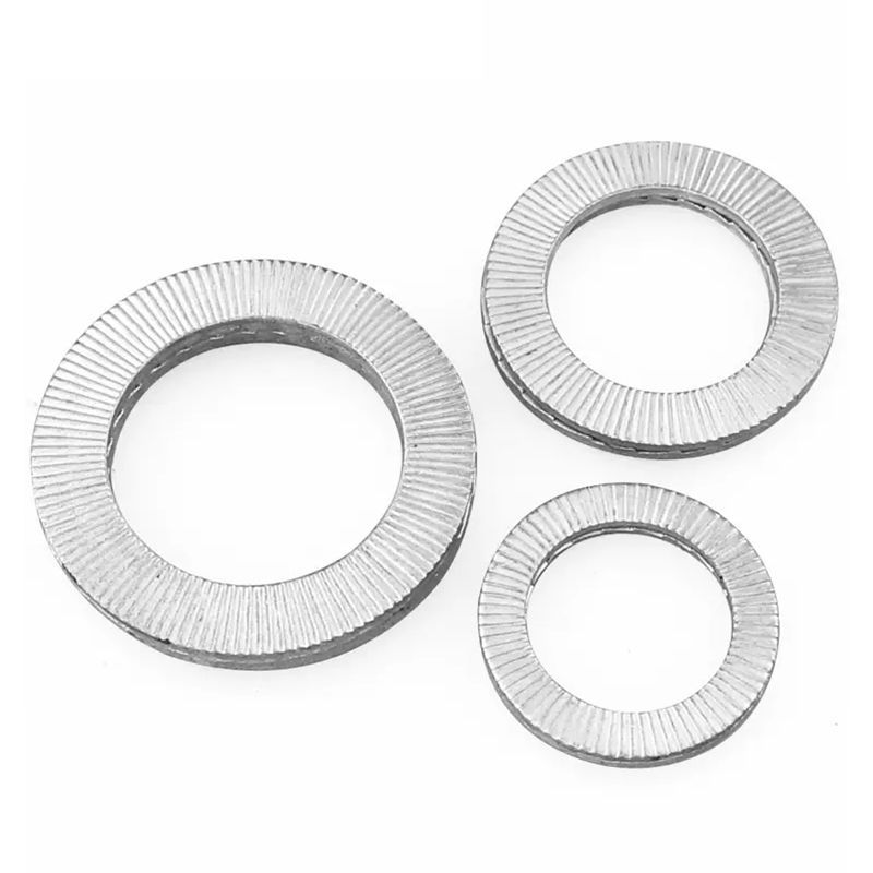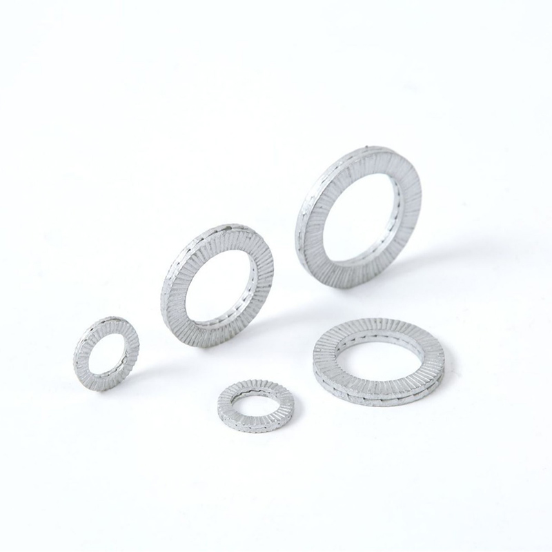 Проведение точной разработки в два раза самостоятельной шейки справа является ключом для них хорошо работать. Они всегда должны идти прямо под частью, которая вращается - гайка или головка болта. Сторона с небольшими гребнями направлена на поверхность соединения, а сторона с вкладками или наклонными деталями направляется вверх в сторону крепежа. Приведите детали к рекомендуемому крутящему моменту, чтобы согнуть вкладку в соответствующую степень, чтобы ее можно было твердо заблокировать. Кроме того, помните, что если два раза сами -блокирующие шайбы будут установлены в неправильном положении, это будет то же самое, что и вообще не установлена, и не будет играть какую -либо фиксирующую роль.