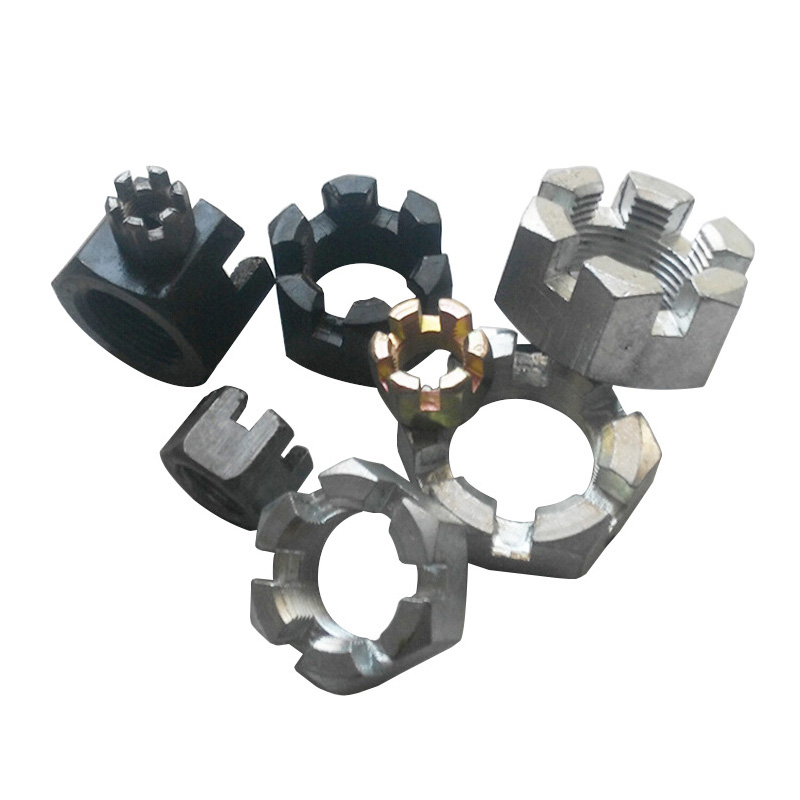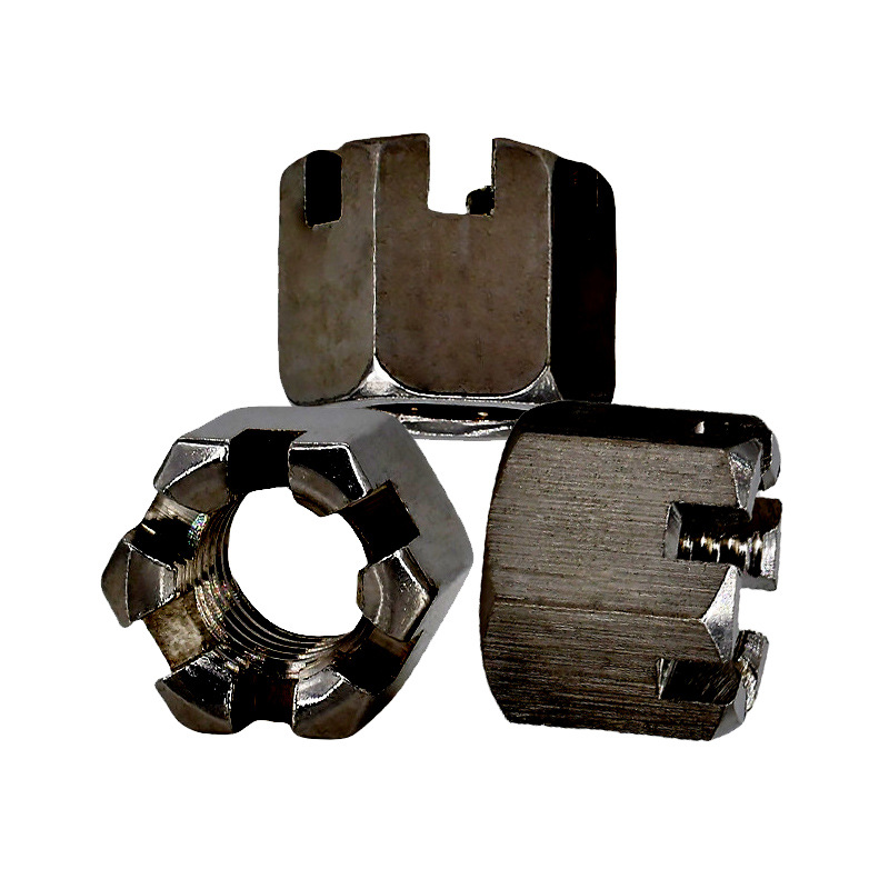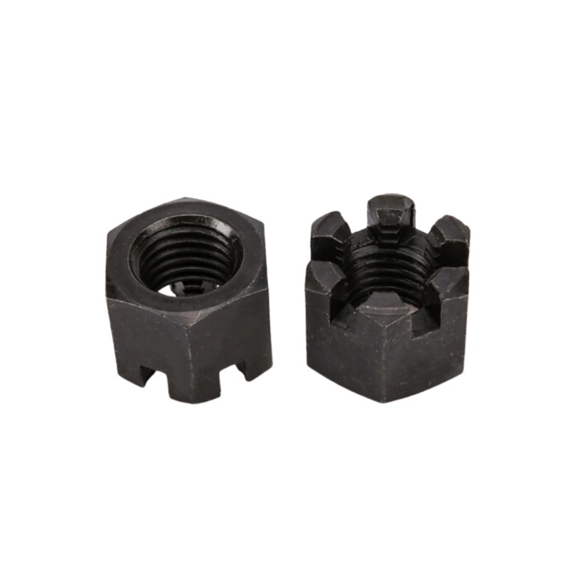 Украшенная точная коронная гайка с прорезью обычно изготавливается из прочной углеродистой стали или сплавной стали, например, 5, степень, 8 или AISI 4140. Это свойство дает им превосходную вязкость, и они также хорошо работают в трех ключевых механических свойствах прочности растягивания, прочности урожая и прочности склона. Изготовленное из прочной стали означает, что эти орехи могут справиться с большим количеством зажима и напряжения от использования без изгиба или разрыва. Вот почему они хорошо работают для тяжелой нагрузки в трудных местах-таких как структурные рамки, трансмиссия и детали подвески.