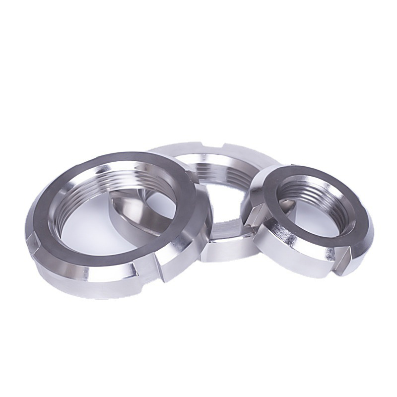 Круглые гайки с прорезями, обработанные прецизионным способом, представляют собой специальные крепежные детали, используемые для удержания деталей механического оборудования, где обычные гайки могут ослабнуть из-за вибрации. Гайки в основном используются в автомобилях и промышленных машинах, особенно в осях, валах и движущихся частях, которые требуют постоянной блокировки.