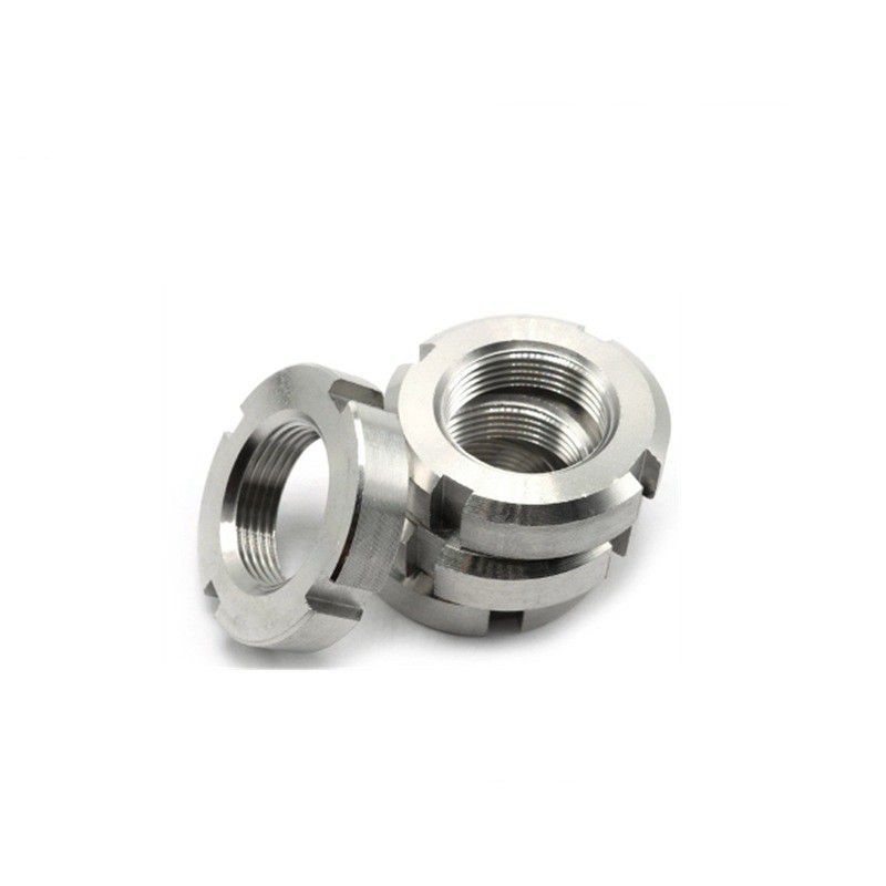 A: Пазы на наших стопорных гайках с прорезями для роликового вала совмещены с отверстием в болте или шпильке после затяжки гайки. Затем вы проталкиваете шплинт через прорезь и отверстие. Это физически фиксирует круглую гайку с прорезью на месте, поэтому она не ослабляется из-за вибрации, а это действительно важно для применений, где безопасность является обязательным условием.