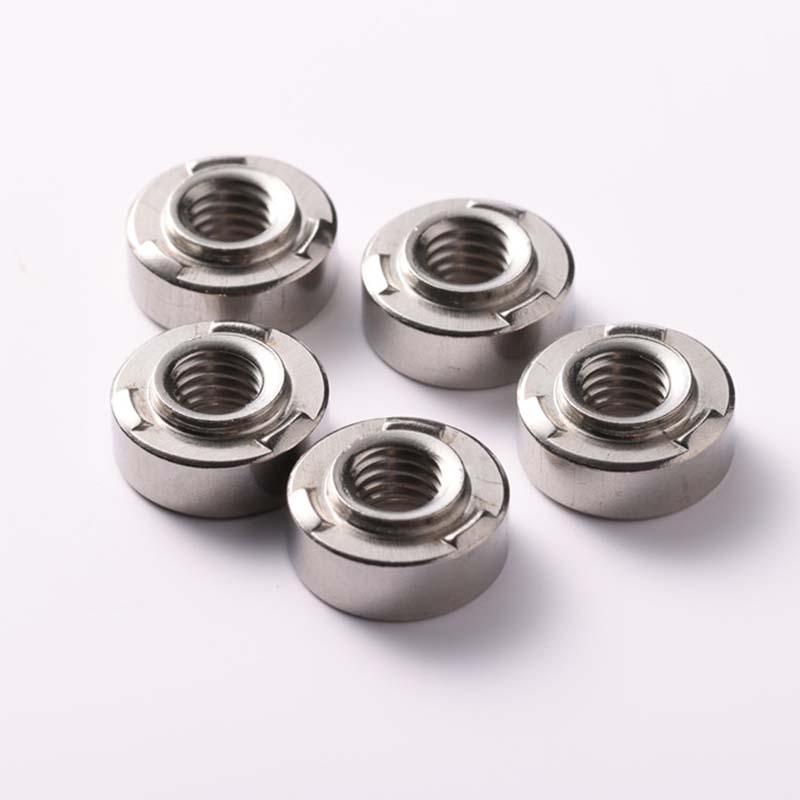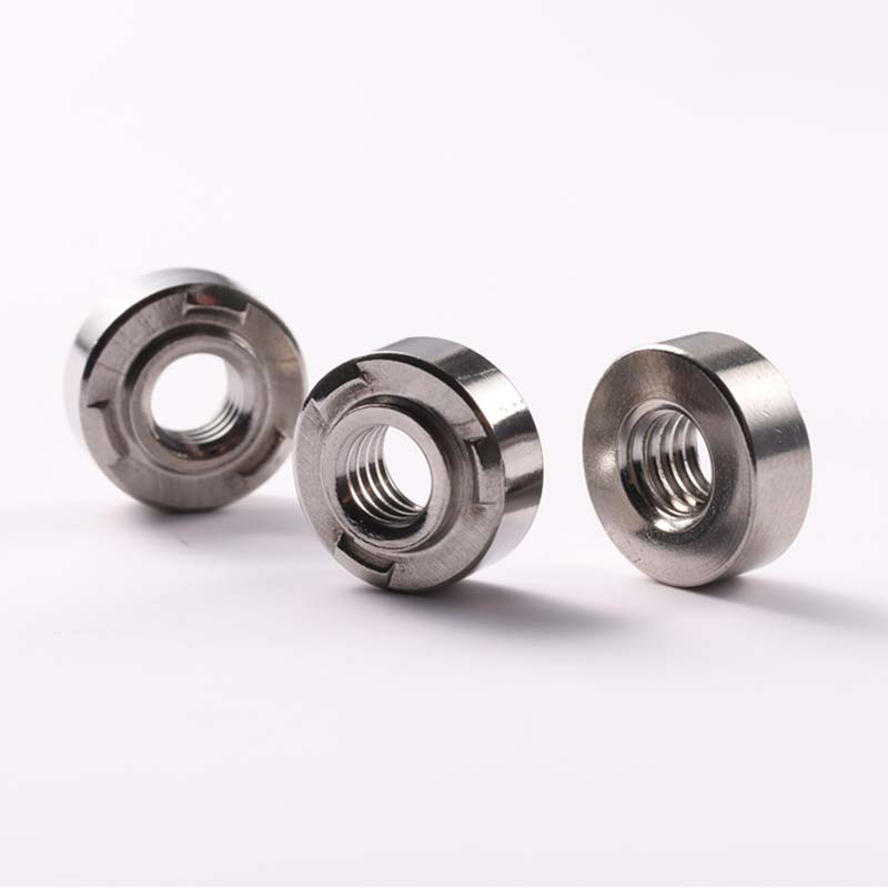 Самозажимная выступающая сварная гайка имеет зубчатую или зубчатую структуру под основанием. Когда вы вставите ее в предварительно просверленные отверстия (с помощью специального сварочного пистолета или инструмента), эти зубцы войдут в металлическую пластину. Затем можно выполнить сварку через центральное отверстие гайки. Сварка навсегда зафиксирует его на месте, но зубцы уже прочно зафиксировали его в процессе сварки. Самоблокирующаяся конструкция имеет продуманную конструкцию, позволяющую одновременно с механическим запиранием достигаться во время сварки, что обеспечивает двойную гарантию стабильности соединения. Он имеет сильную адаптируемость к сварочным деталям. Будь то тонкая железная пластина или толстая стальная пластина, она может надежно и плавно выполнять сварку и фиксацию.