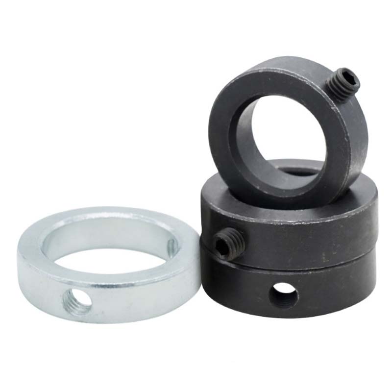 Устанавливающий винтовой воротник-это круговой крепежный крепеж с установленным винтом. Его легко установить одним человеком, не требуя специальных инструментов. Чтобы удалить, просто ослабьте гайку блокировки. Он широко используется в крупных электродвигателях, дробилках, горнодобывании, машинах с ЧПУ, печатным механизмам и другим оборудованием.