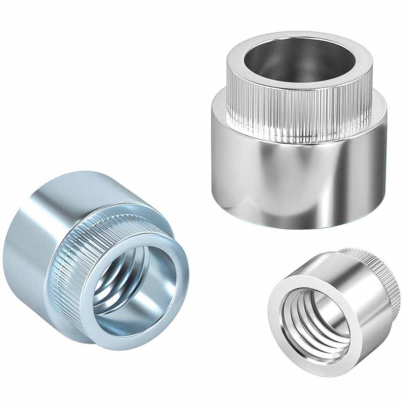 Тем временем, круглая часть гайки имеет обычные нити внутри. Большой фланцевой фланец выполняет две задания: он распространяет силу сдавливания, поэтому он не натягивает тонкий материал, и надува (эти маленькие хребты) кусают на поверхность, чтобы не запустить весь круглый куст заклепки, когда вы включаете болт в или наружу.