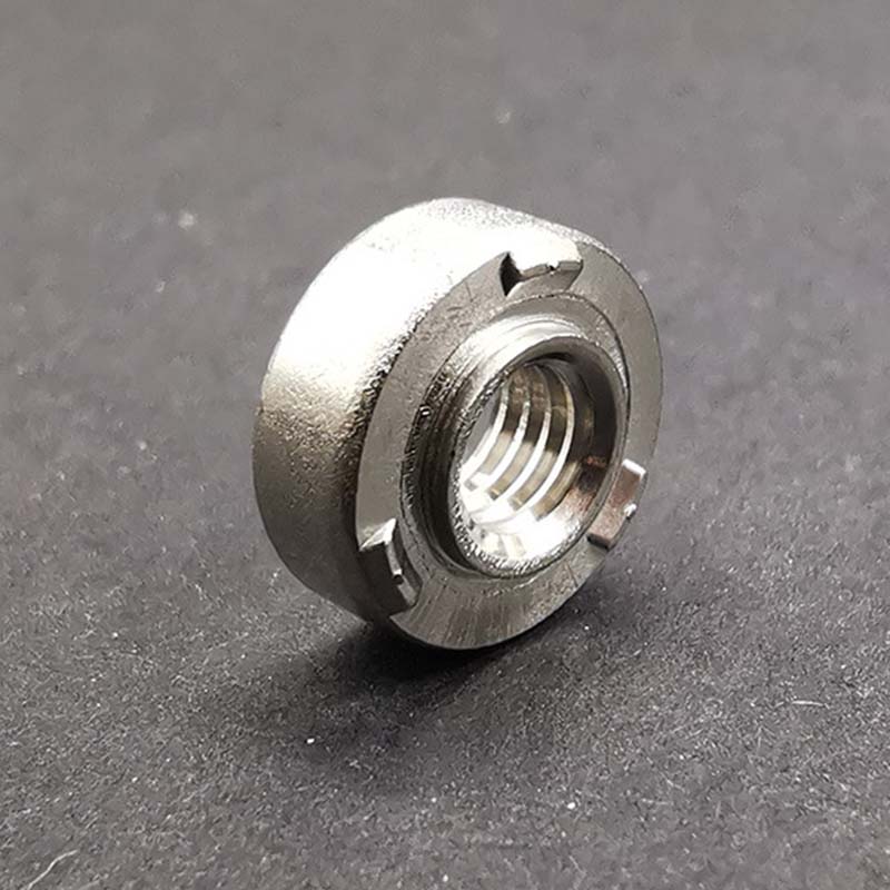 Внешний вид самоустанавливающейся приварной гайки из нержавеющей стали отличается от внешнего вида обычной гайки. Боковая или нижняя часть гайки имеет приподнятую часть. Его резьба варьируется от M3 до M16, и его можно использовать с различными соответствующими болтами.