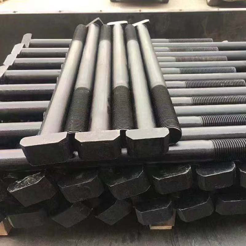 T -якорный болт T используется в основном для исправления дорожки до шпала железнодорожных бетонов. Плоская часть «T» в форме прочно встроена в канавку спящего, чтобы предотвратить вращение болта. Резьбовой конец выступает вверх и используется для исправления рельсовой прокладки и зажимного зажима. Он может твердо заблокировать все компоненты, чтобы предотвратить вибрацию поезда и перемещение нагрузки.