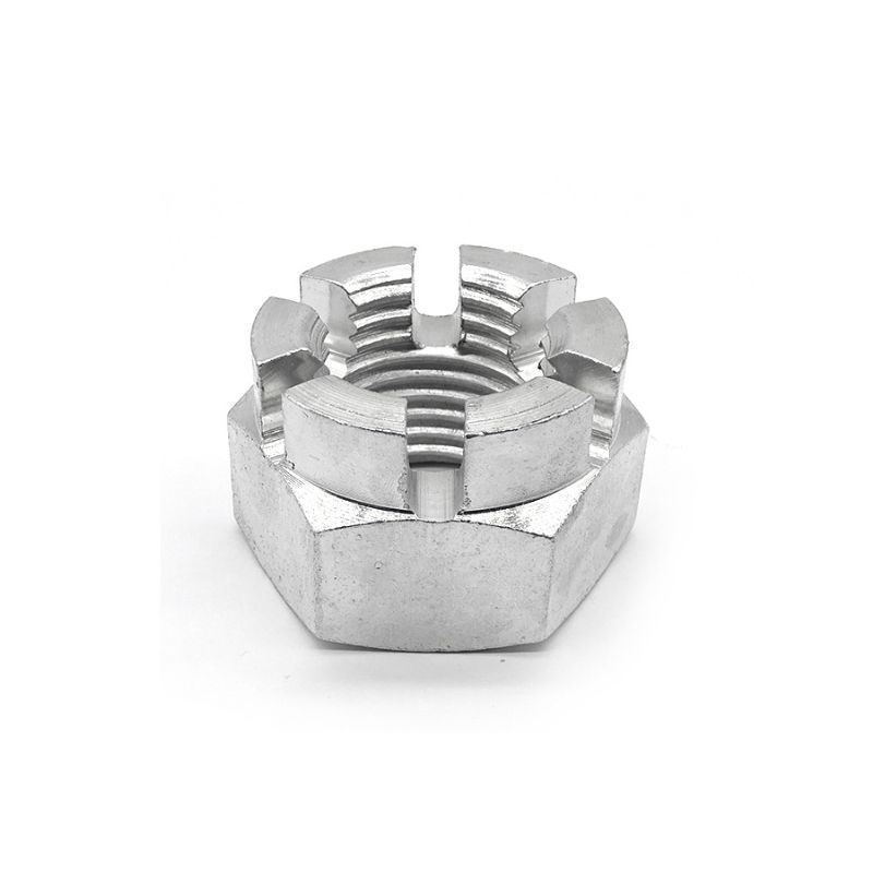 A: Главное в непоколебимой короновой гайке с прорезью - это прорезь, разрезанная в корону. После того, как вы затягиваете гайку на болт, вы наклеите разделенную штифт (штифт) через предварительно просверленное отверстие в хвостовике болта, а затем через этот слот. Затем вы сгибаете концы булавки назад. Это физически останавливает щельющуюся коронную гайку вращения или ослабление - даже с действительно сильными вибрациями или движущимися нагрузками. Вот почему это хорошо работает для важных рабочих мест, связанных с безопасностью.