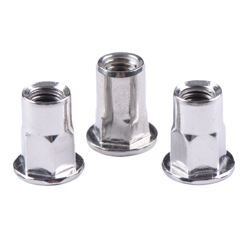 Универсальная шестигранная заклепочная гайка имеет шестигранный корпус. В отличие от круглых, эта форма не дает ему вращаться после установки. Это ключевая часть его конструкции — он сделан так, чтобы вставляться в соответствующие шестиугольные отверстия. Таким образом, когда вы затягиваете винт, гайка не будет вращаться вместе с ним. Доступны различные типы, например, полный шестиугольник и полушестиугольник. Головки также доступны в таких вариантах, как плоская головка и небольшая потайная головка. Вы можете выбрать тот, который соответствует вашим потребностям, хотите ли вы, чтобы он располагался заподлицо с материалом или имел небольшой выступ после установки.
